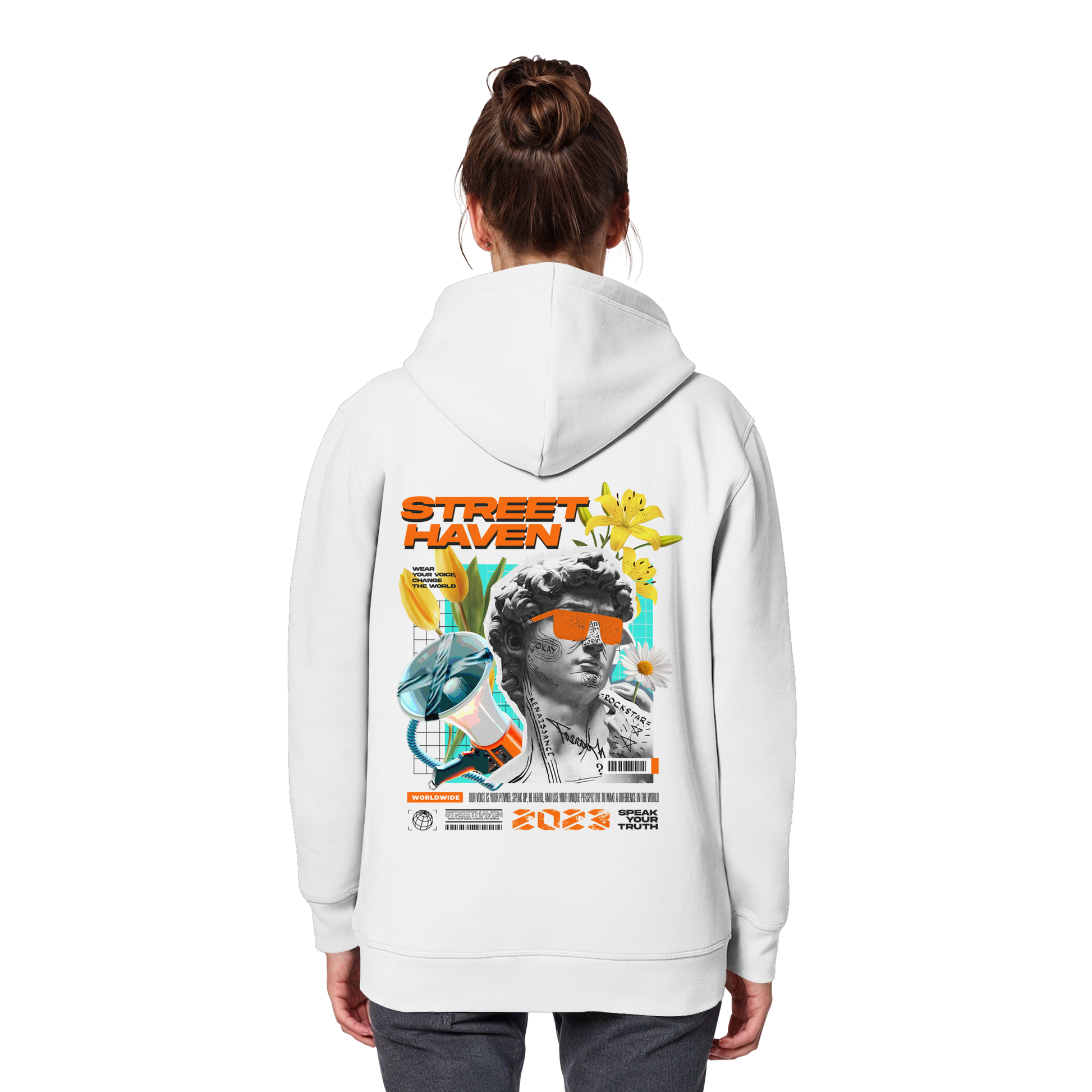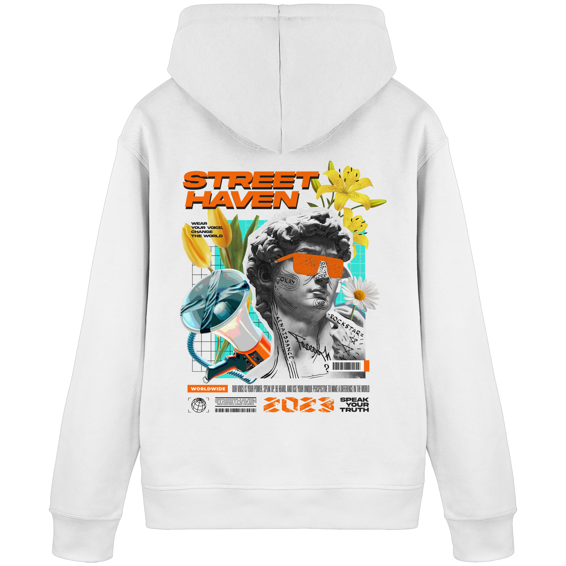 Entfessle deine Stimme, trage deine Worte. Drücke dich furchtlos und positiv mit unserem Shirt zur Freiheit der Meinungsäußerung aus und setze ein starkes Statement, Wort für Wort. Lass deine Gedanken frei fließen, denn wenn Ideen entfacht werden, beginnt der Wandel.