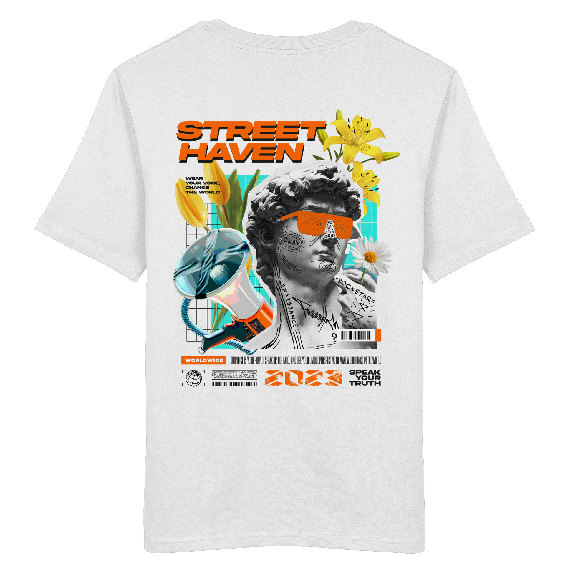 Entfessle deine Stimme, trage deine Worte. Drücke dich furchtlos und positiv mit unserem Shirt zur Freiheit der Meinungsäußerung aus und setze ein starkes Statement, Wort für Wort. Lass deine Gedanken frei fließen, denn wenn Ideen entfacht werden, beginnt der Wandel.